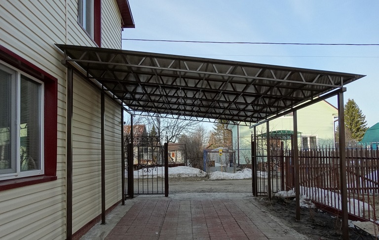 Стандартные характеристики каркаса навеса: столбы 80х80х3мм.